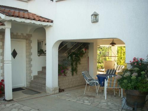 Wohnung Mandarine: Eine nette helle Ferienwohnung im Ferienhaus Ivan, im  1.OG mit Balkon, wunderbar gestaltetem Garten in ruhiger Lage im Dorf Peroj in Strandnähe.
